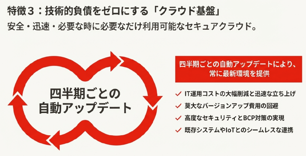 3. セキュアなクラウド基盤と「四半期ごとの自動アップデート」